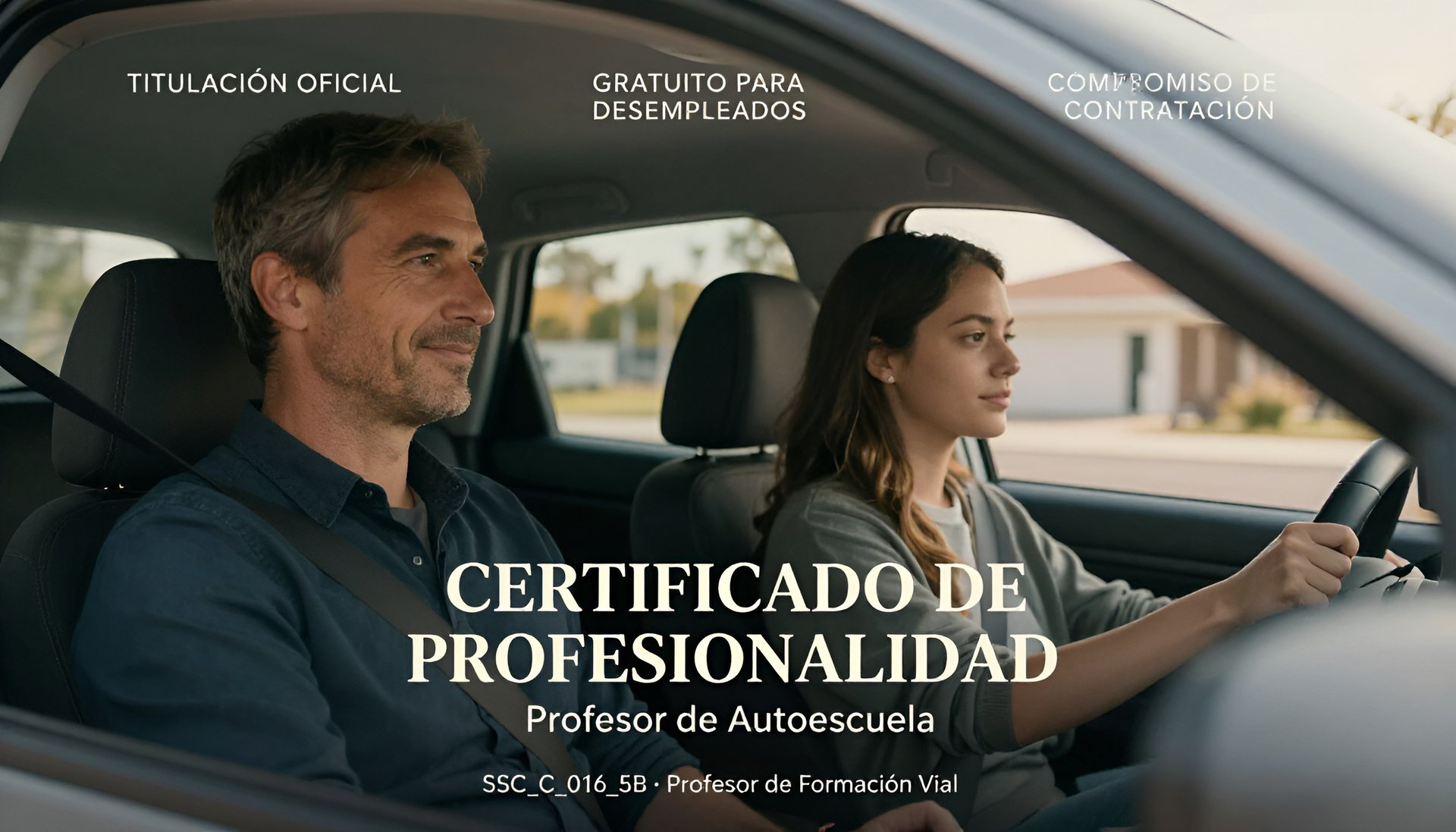 El Certificado de Profesionalidad de Profesor de Autoescuela (SSC_C_016_5B) acredita las competencias necesarias para ejercer como formador de conducción vial, capacitando para impartir formación teórica y práctica a futuros conductores.